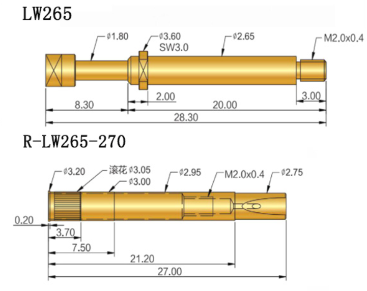 彈簧材料:一般采用高強(qiáng)度的不銹鋼彈簧或鈹銅彈簧,具有良好的彈性和疲勞壽命,能夠提供穩(wěn)定的彈力,確保探針與被測物體之間的可靠接觸。