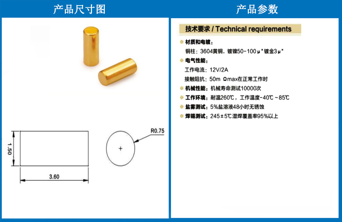 產(chǎn)品型號(hào):1.5*3.6 銅柱
