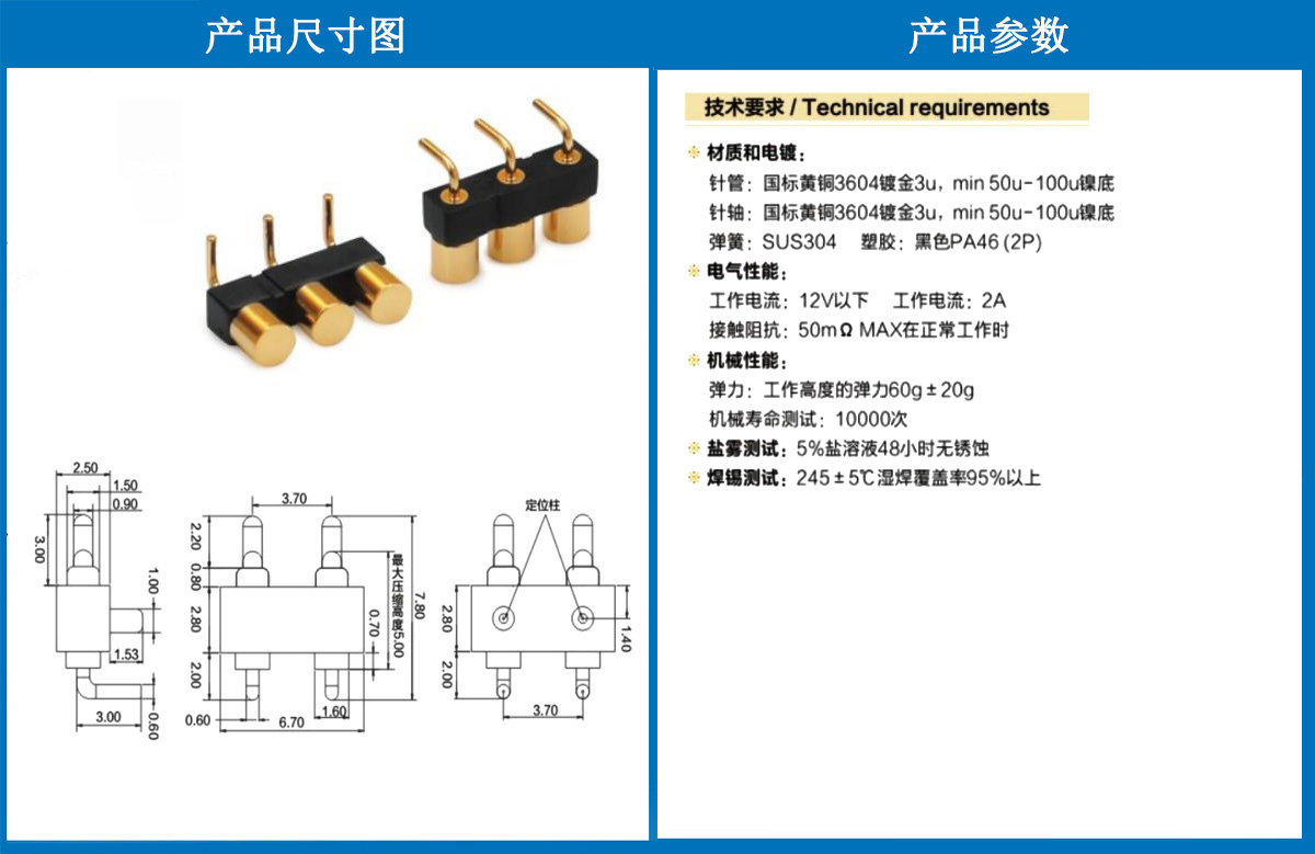 產(chǎn)品介紹:這個(gè)針通常用于智能手表,藍(lán)牙耳機(jī)上的有充電的功能,但是探針總體來說還是測(cè)試的