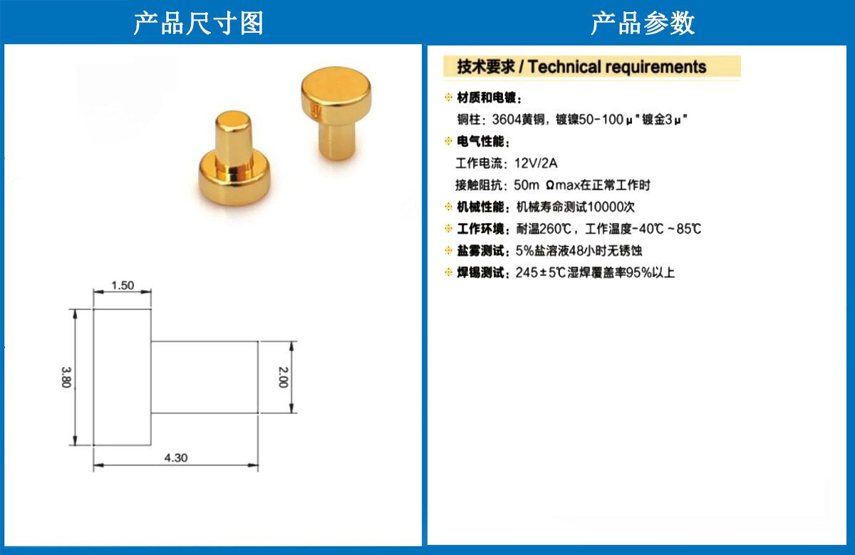3.8*4.3銅柱 當(dāng)前位置:首頁 » POGO PIN充電彈簧頂針 » 銅柱系列