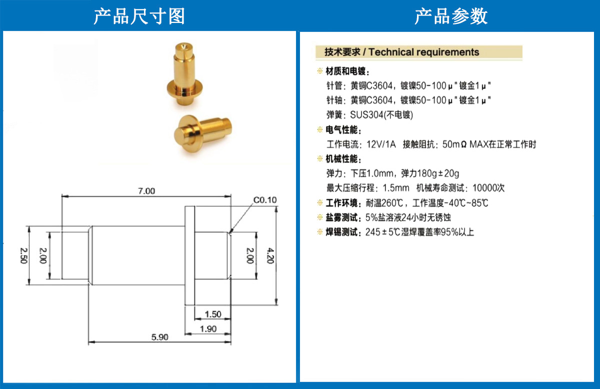 4.2*7.0電極針 當(dāng)前位置:首頁 » POGO PIN充電彈簧頂針 » 電極針
