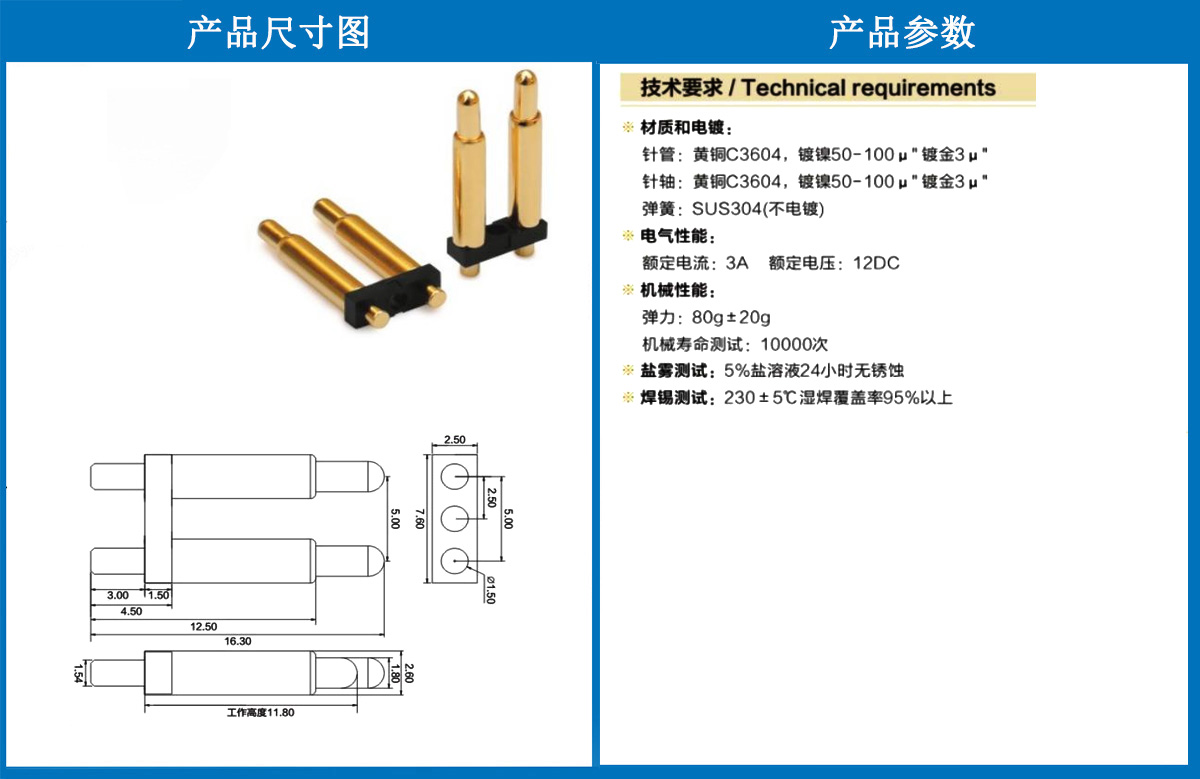 產(chǎn)品介紹:這個(gè)針通常用于智能手表,藍(lán)牙耳機(jī)上的有充電的功能,但是探針總體來(lái)說(shuō)還是測(cè)試的