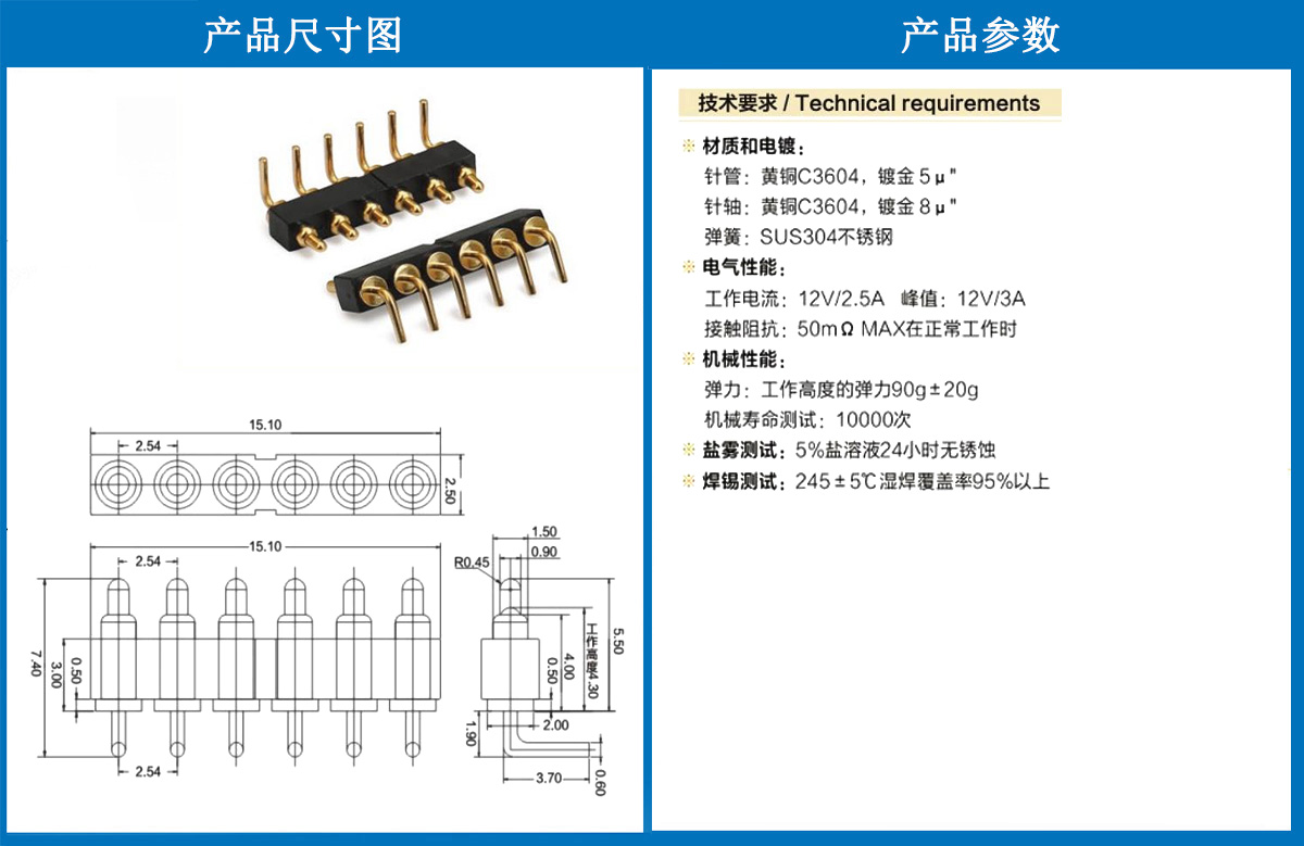 產(chǎn)品介紹:這個(gè)針通常用于智能手表,藍(lán)牙耳機(jī)上的有充電的功能,但是探針總體來(lái)說(shuō)還是測(cè)試的