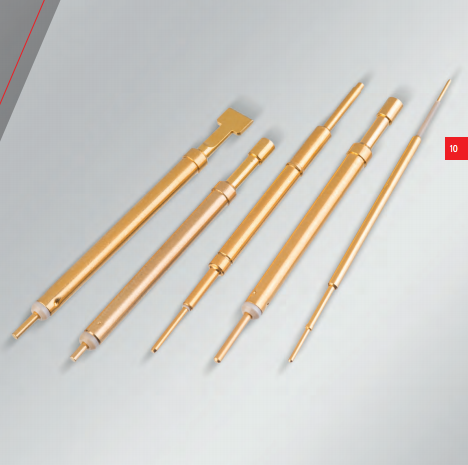 使用華榮華旋轉(zhuǎn)測試探針,可以確保最佳的待測物接觸可靠性,無需額外施加壓力。故此,當接觸測試表面的時候,通過旋轉(zhuǎn)測試探針產(chǎn)品的增加彈簧預應力可使得彈簧力提高100%以上。但是,旋轉(zhuǎn)測試探針在工作行程方面具